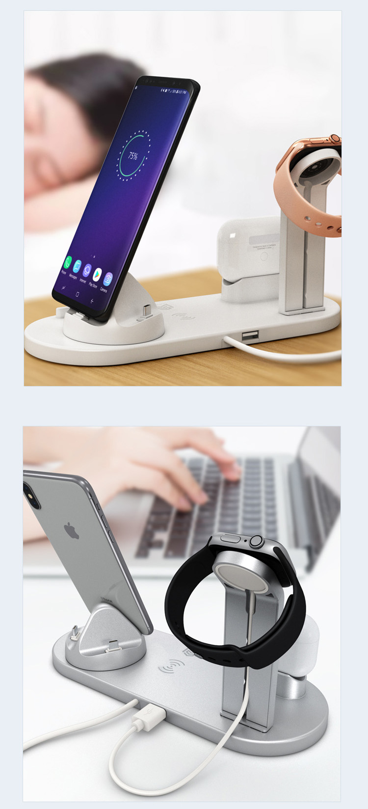4in1 Wireless Kablosuz Şarj İPhone+USB C+Micro Usb Şarj Standı 5 farklı renk seçeneği ile